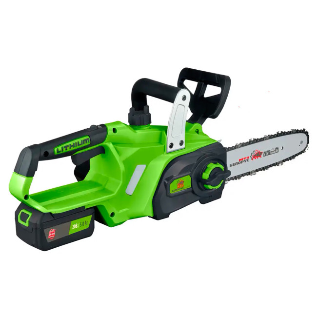 Ланцюгова акумуляторна пилка АПЦ-20М від торгової марки «Білорус МТЗ» має ергономічний корпус з невеликими габаритами, що виділяється низьким рівнем шуму. Широко застосовується для обрізання гілок та заготівлі дров у побутових умовах.