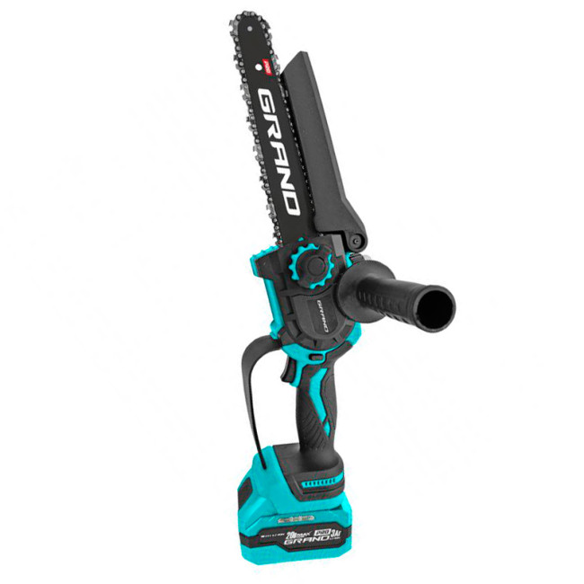 Акумуляторна ланцюгова пилка Grand АПЦ-8М/3-2 має високу якість складання і створена на основі безщіткового двигуна (Brushless). Дана пилка призначена для зрізання або обрізання гілок, розпилу свіжої, сухої та мокрої деревини діаметром до 20 см.