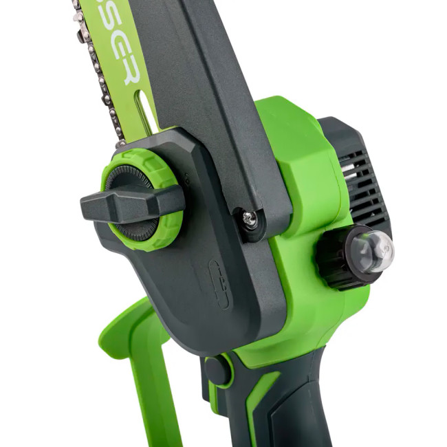 Ланцюгова акумуляторна пилка Grosser GCS 602 має високу швидкість обертання ланцюга 6 м/сек, що дозволяє підвищити ефективність розпилювальних робіт.