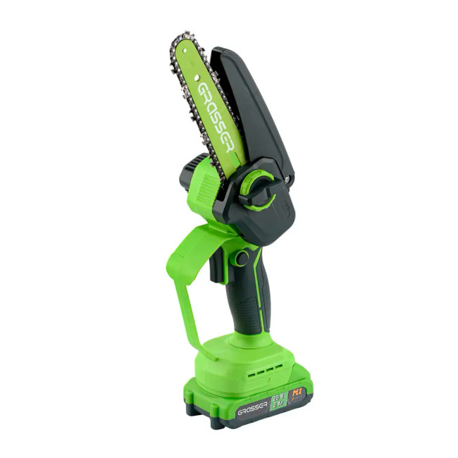 Акумуляторна пилка ланцюгова від торгової марки «Grosser» використовується для обрізання дерев та видалення сухих гілок на присадибній ділянці, як ріжучий елемент застосовується напрямна шина довжиною 6 дюймів (152 мм) та ланцюг (крок 1/4).