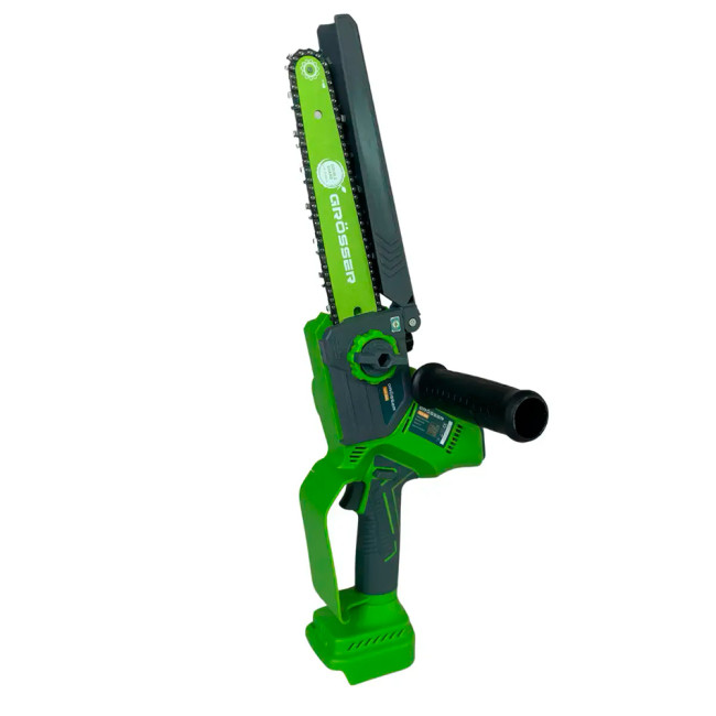 Ланцюгова акумуляторна пилка Grosser GCS 820 має високу швидкість обертання ланцюга 7 м/сек, що дозволяє підвищити ефективність розпилювальних робіт.