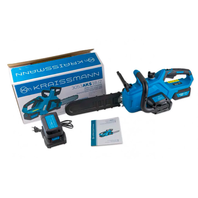 Акумуляторна пилка Kraissmann 3053 AKS 18/2 поставляється в комплекті з двома батареями та зарядним пристроєм. Напруга акумулятора становить 18 Вольт при цьому ємність дорівнює 4000 м/Ач, швидкий час зарядки (1 година) дозволить Вам завжди бути готовим до роботи, адже поки Ви працюєте електричною пилкою, друга батарея заряджається і завжди готова до використання.
