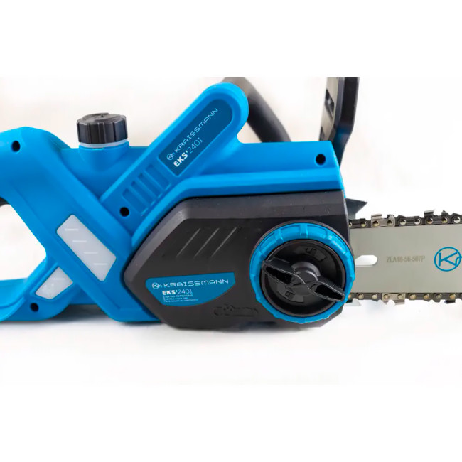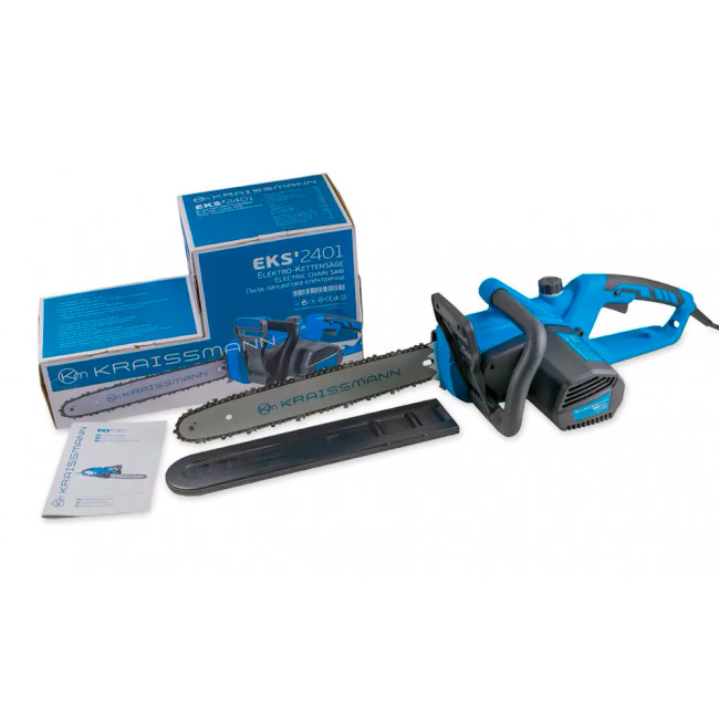 Електрична пилка Kraissmann EKS 2401 має бічне розташування двигуна і має потужність 2400 Вт, при цьому швидкість обертання ланцюга досягає 13 м/сек. Високий рівень збирання на основі надійних комплектуючих дозволяє значно підвищити експлуатаційний ресурс інструменту.