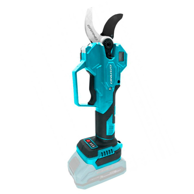 Секатор аккумуляторный Grand СА-40F/20BL-base имеет безщеточный двигатель нового поколения, в качестве источника питания применяется аккумуляторная батарея напряжение которой составляет 20 В, тип аккумулятора — литий-ионный, с отсутствием эффекта памяти. Данный тип батарей очень быстро заряжается (до 1-1,5 часа) и долго держит заряд. При интенсивной обрезке способен автономно работать около 40-50 мин, в зависимости от диаметр веток может быть и больше.