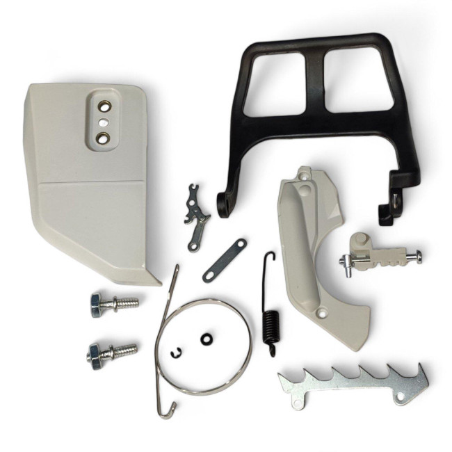 Ручка гальма ланцюга бензопили ST 170/180 - це повний набір який включає не тільки ручку гальма, а також входить кришка, шпильки, пружини, натягувач і зубчастий упор.