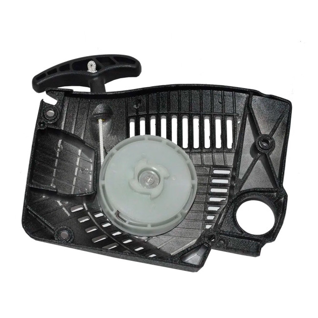 Стартер для бензопили Grosser GGS 4300 йде повністю в зборі, виконаний з якісних комплектуючих та має металевий корпус. Має вбудовану спеціальну пружину, яка полегшує запуск бензопили та зменшує ваші зусилля.