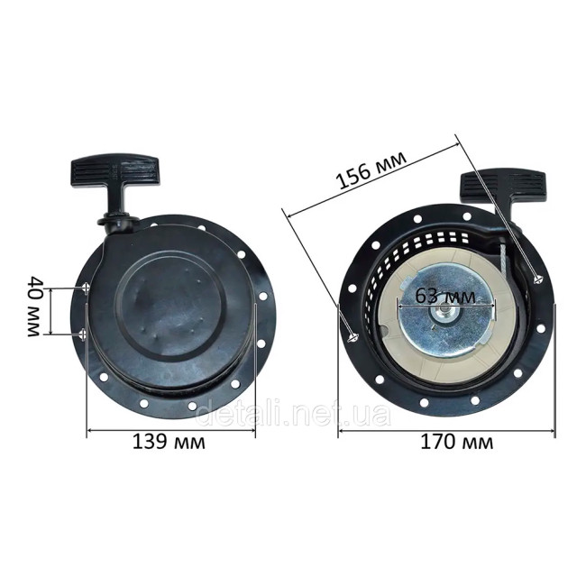 Ручний стартер дизельного двигуна генератора 170F виконаний з якісних матеріалів і має високий ресурс. Встановлюється на дизельні двигуни мотоблоків, генераторів та інші апарати, створені на основі дизельних двигунів 4 к.с. маркування 170F.