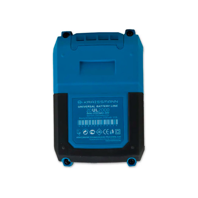 Акумуляторна батарея Kraissmann 20UL 2000 (20 В 2 А/год Li-on) – літій-іонний акумулятор, призначений для використання з акумуляторним інструментом Kraissmann серії 20 Universal Line (пила ланцюгова, шуруповерт, гайковерт, шліфмашин).