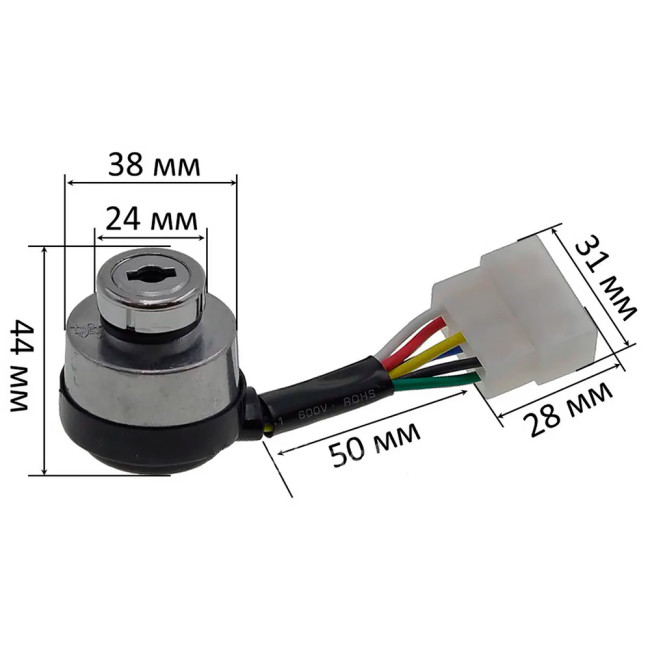 Опис Замок запалювання двигуна генератора 188F/190F (6 контактів)